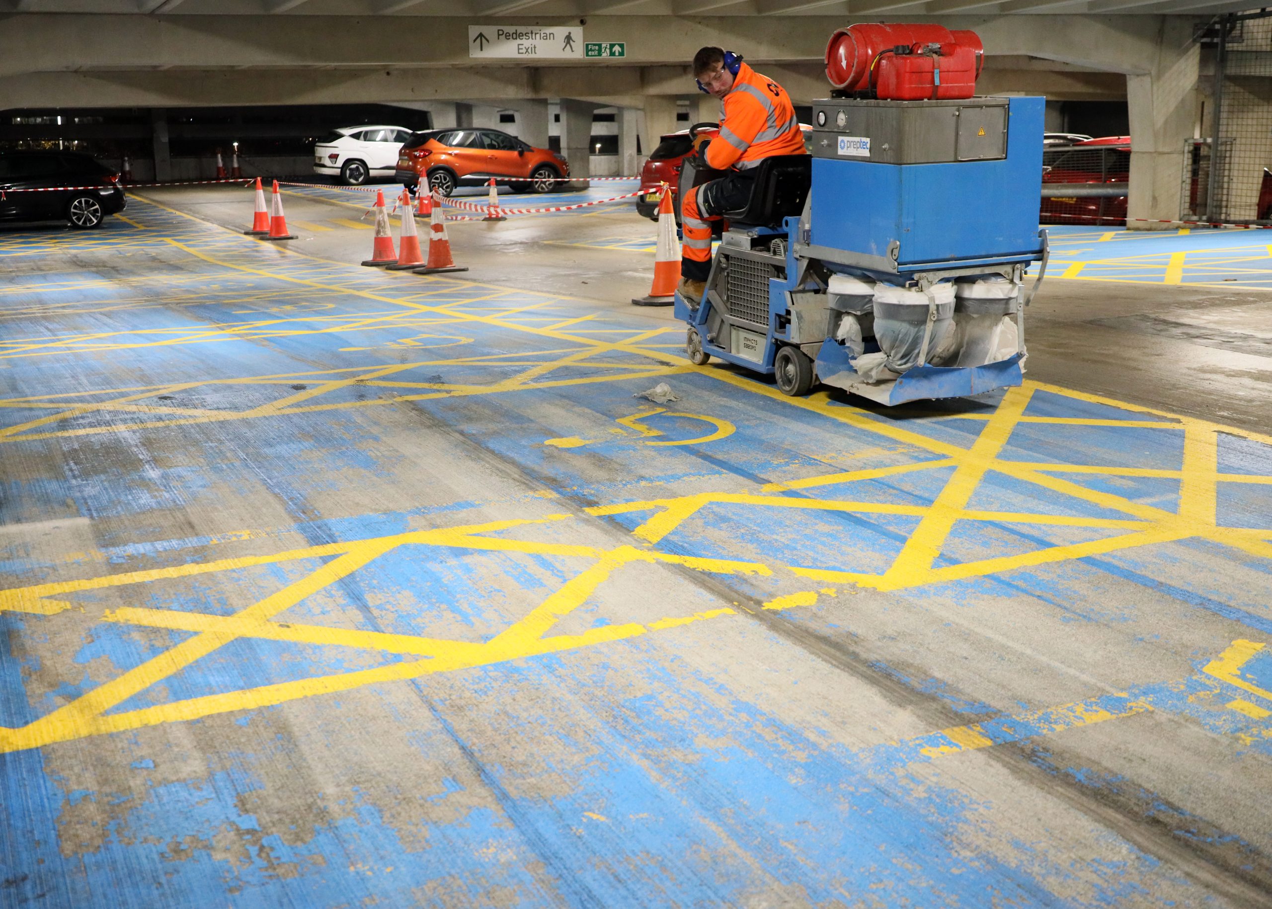We use industry-leading equipment — including the UK’s first ride-on compact shot blaster — allowing us to prepare large areas quickly and safely without trailing cables or generators. Every project is assessed and matched to the surface type, the existing markings, and the finish you need to achieve.